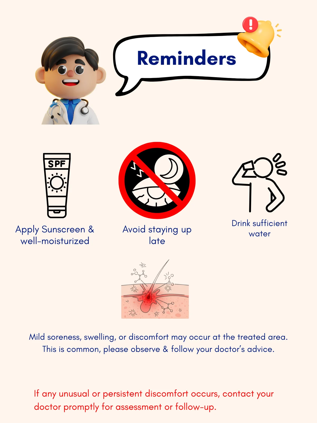 To support a smooth recovery and stable results, please note the following after care advice: